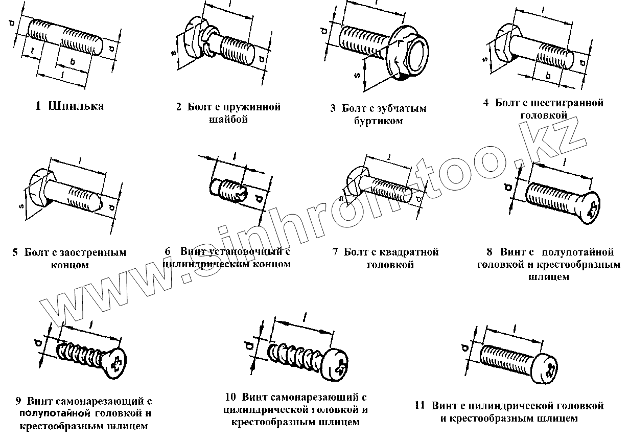 Каталог запасных частей к технике: ВАЗ-1111 (ОКА). Шпильки, болты, винты