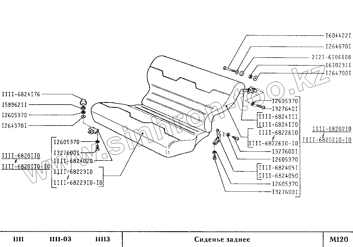 Каталог запасных частей к технике: ВАЗ-1111 (ОКА). Сиденье заднее