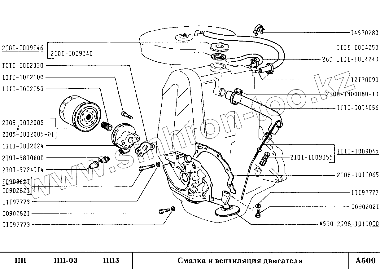 Каталог запасных частей к технике: ВАЗ-1111 (ОКА). Смазка и вентиляция двигателя