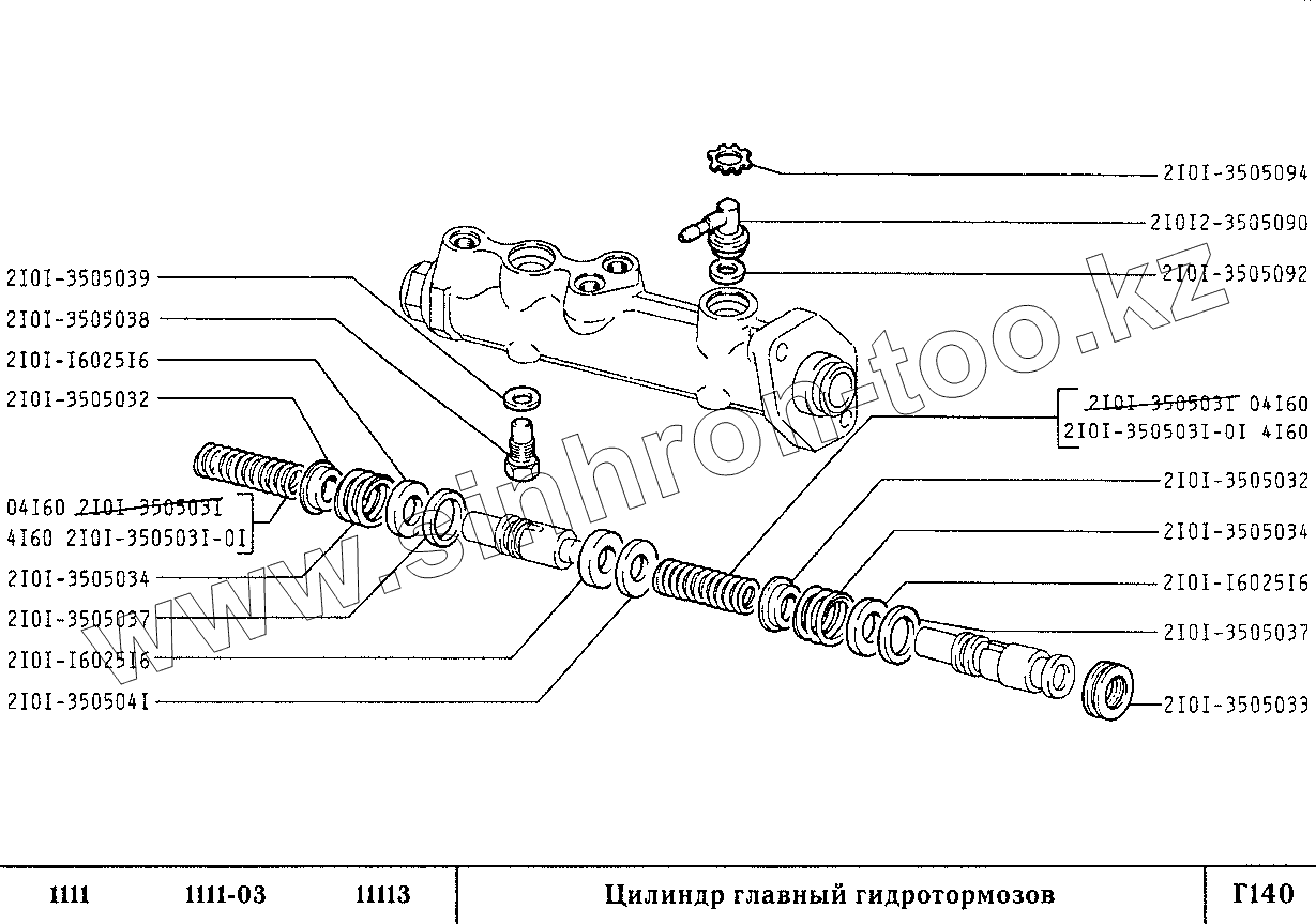 Каталог запасных частей к технике: ВАЗ-1111 (ОКА). Цилиндр главный гидротормозов