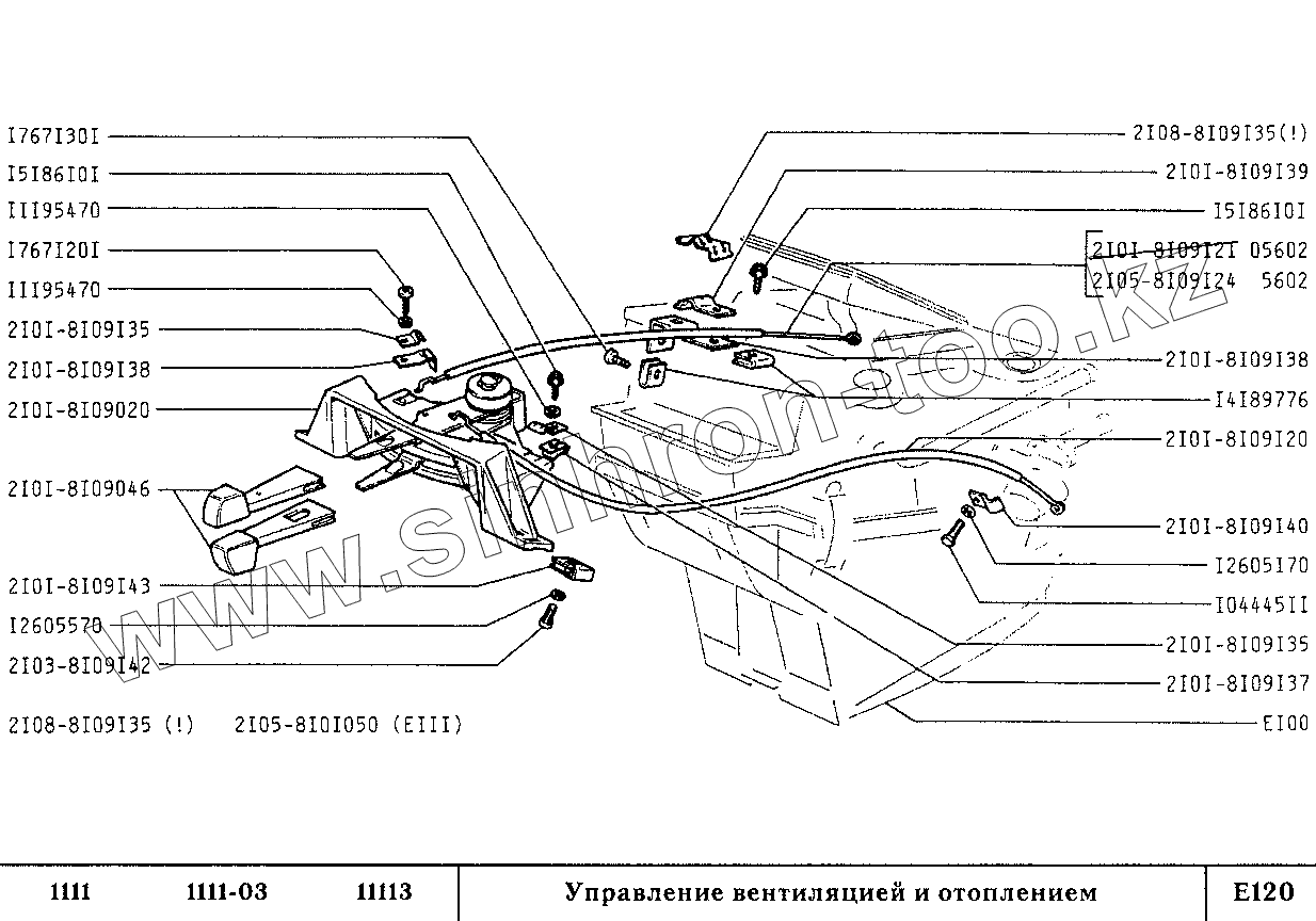 Каталог запасных частей к технике: ВАЗ-1111 (ОКА). Управление вентиляцией и отоплением