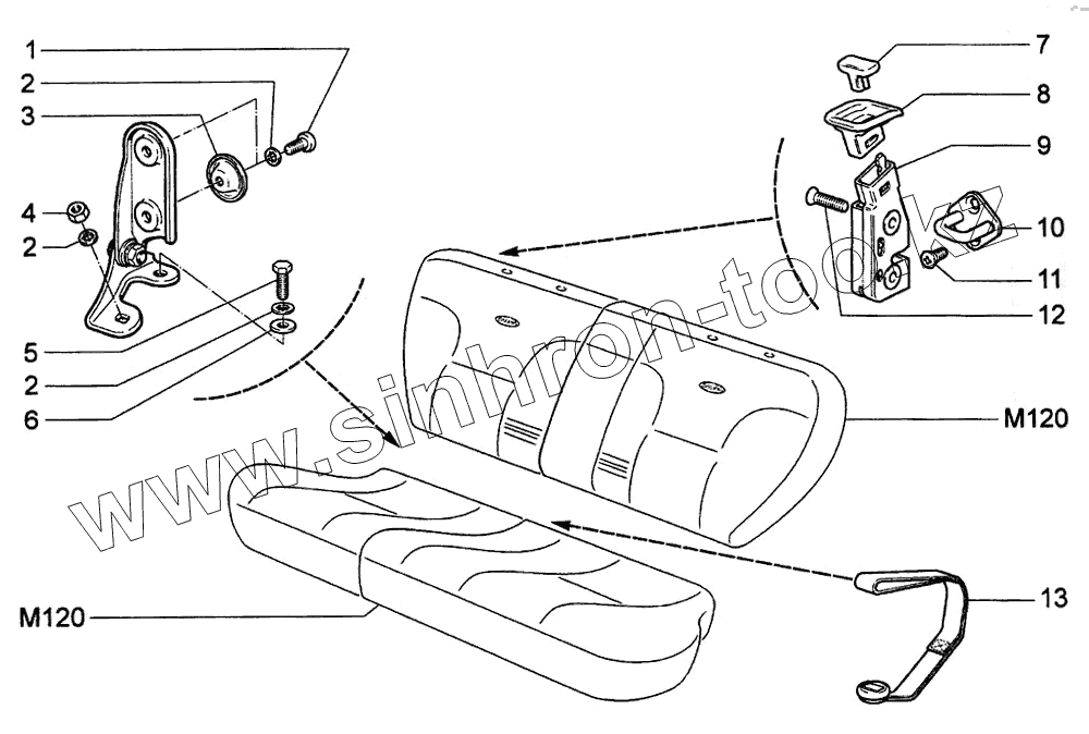 Каталог запасных частей к технике: ВАЗ-1118 (LADA Kalina). Механизм установки заднего сиденья