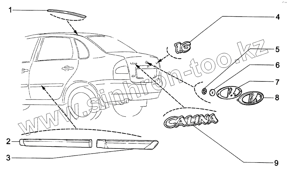 Каталог запасных частей к технике: ВАЗ-1118 (LADA Kalina). Молдинги и накладки декоративные