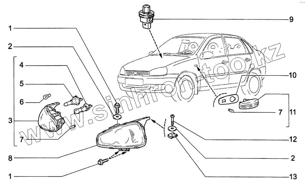 Каталог запасных частей к технике: ВАЗ-1118 (LADA Kalina). Освещение переднее