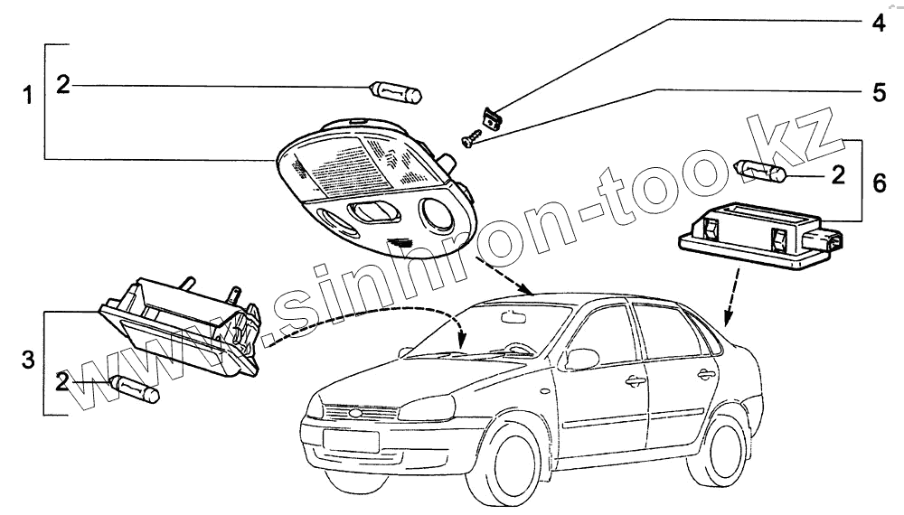 Каталог запасных частей к технике: ВАЗ-1118 (LADA Kalina). Освещение салона