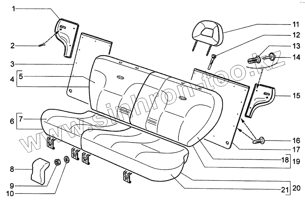 Каталог запасных частей к технике: ВАЗ-1118 (LADA Kalina). Сиденье заднее