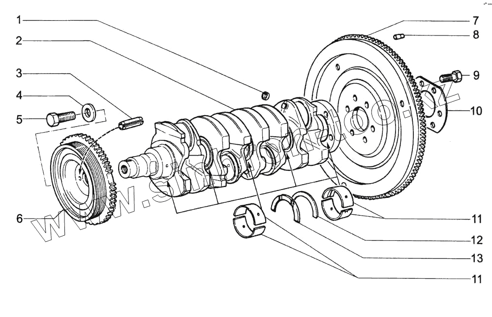 Каталог запасных частей к технике: ВАЗ-1118 (LADA Kalina). Вал коленчатый и маховик