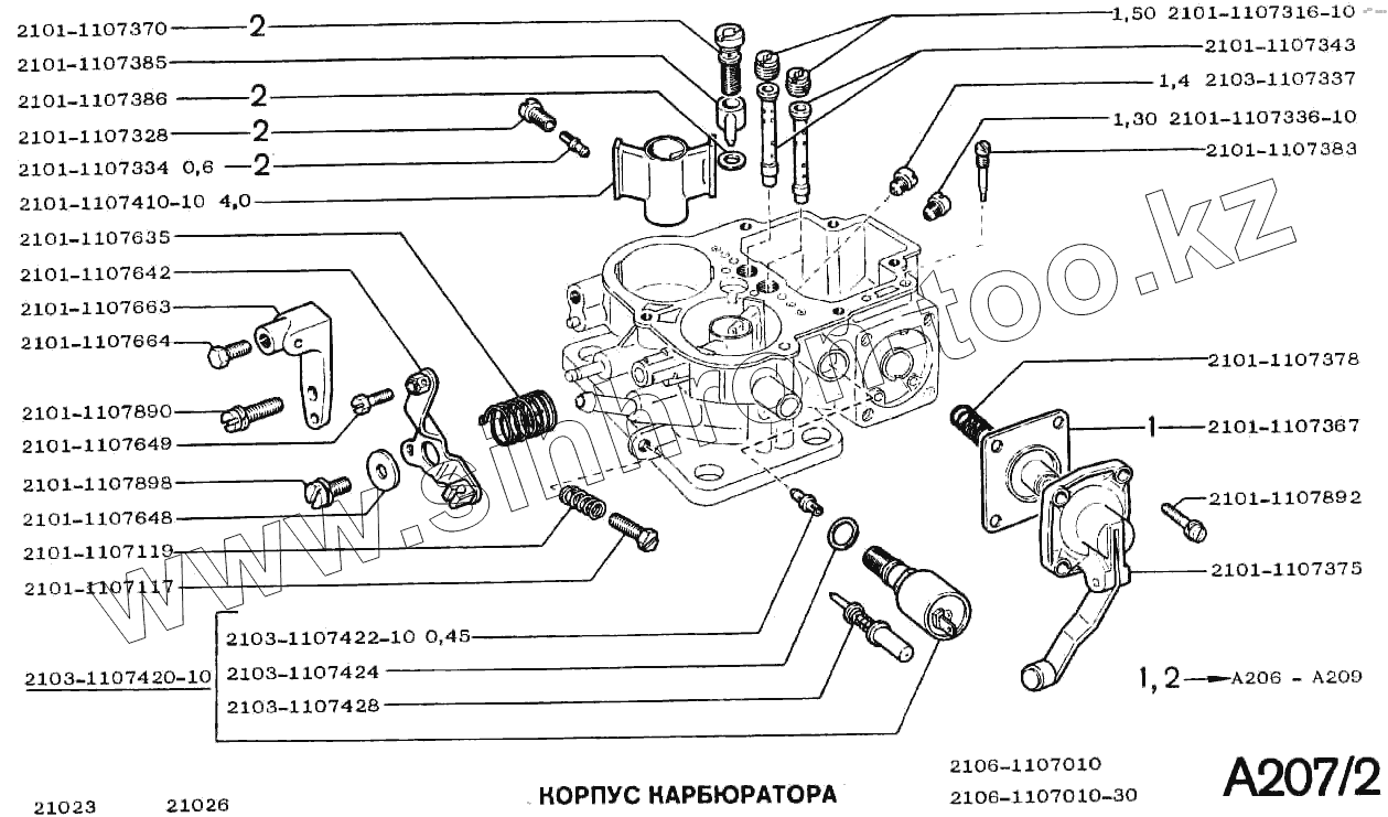 Каталог запасных частей к технике: ВАЗ-2101. Корпус карбюратора