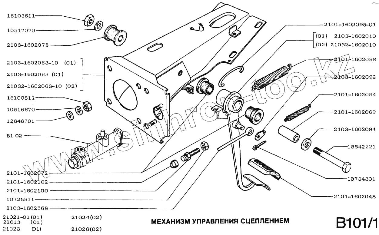 Каталог запасных частей к технике: ВАЗ-2101. Механизм управления сцеплением