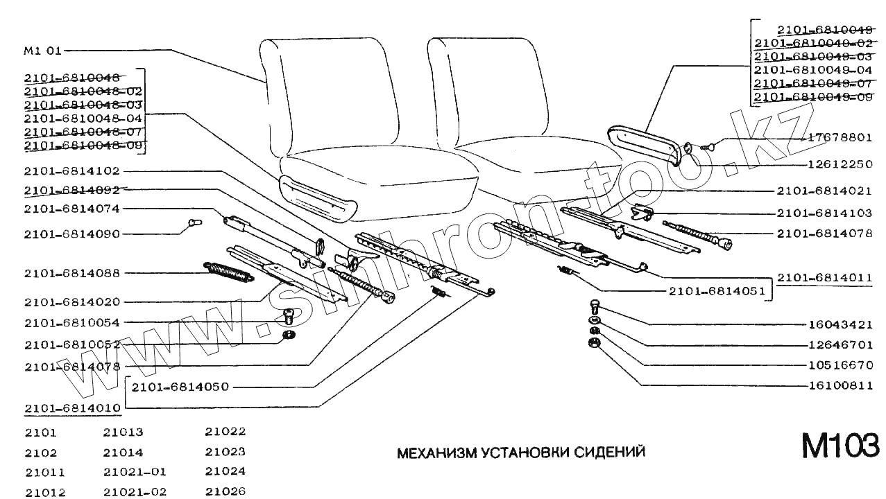 Каталог запасных частей к технике: ВАЗ-2101. Механизм установки сидений