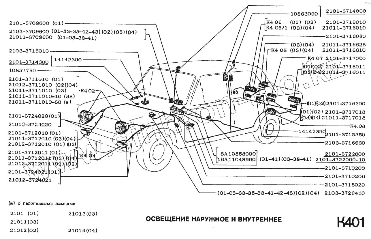 Каталог запасных частей к технике: ВАЗ-2101. Освещение наружное и внутреннее