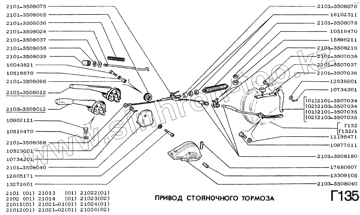 Каталог запасных частей к технике: ВАЗ-2101. Привод стояночного тормоза