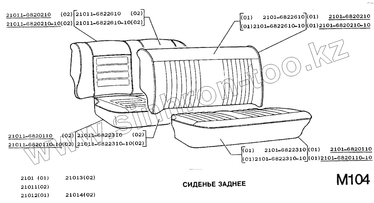 Каталог запасных частей к технике: ВАЗ-2101. Сиденье заднее