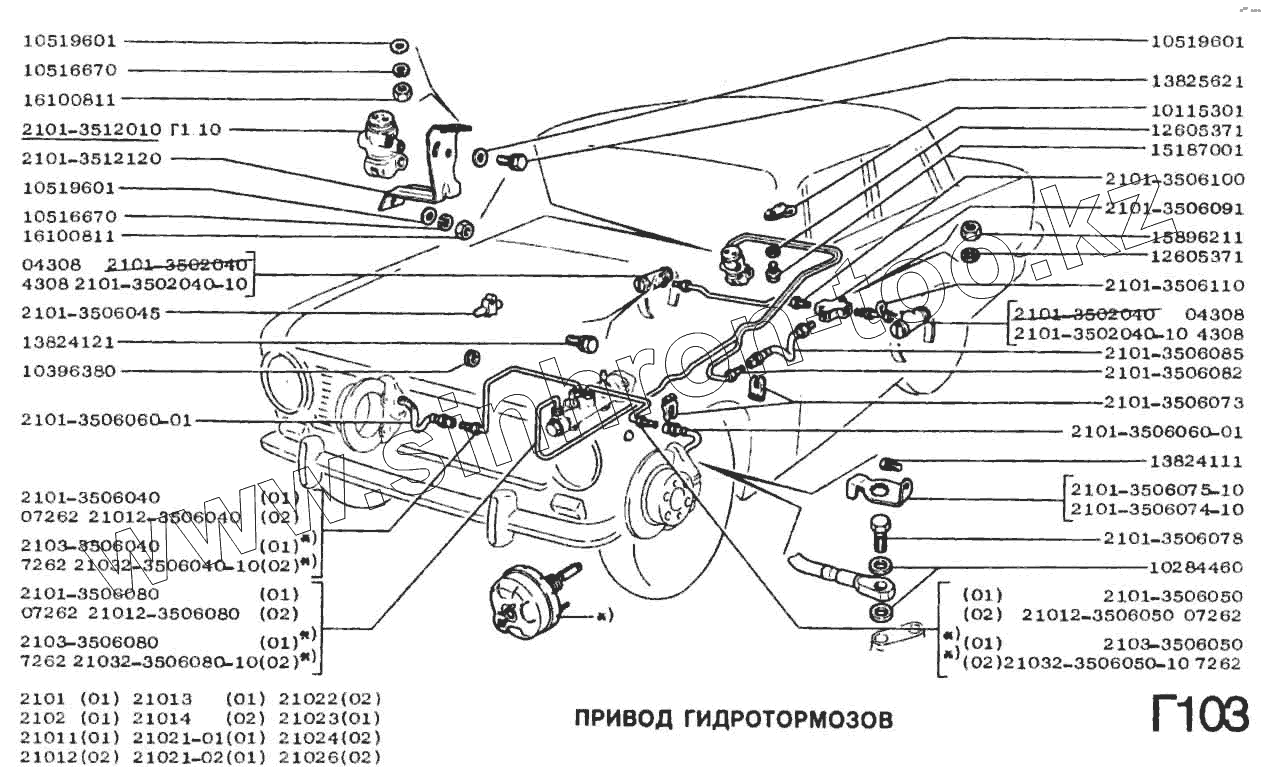 Каталог запасных частей к технике: ВАЗ-2101. Система гидротормозов