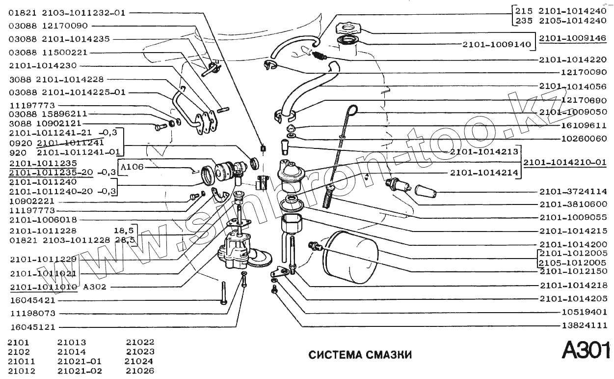 Каталог запасных частей к технике: ВАЗ-2101. Система смазки