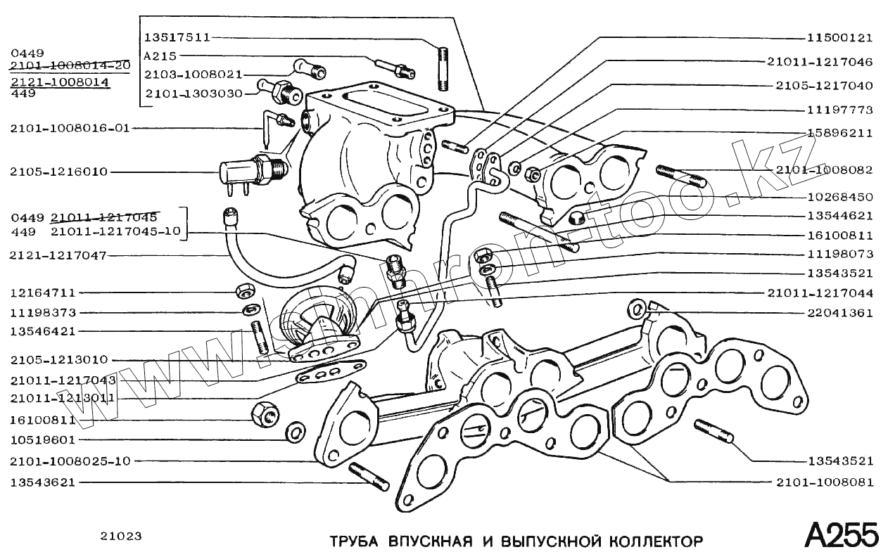 Каталог запасных частей к технике: ВАЗ-2101. Труба впускная и выпускной коллектор