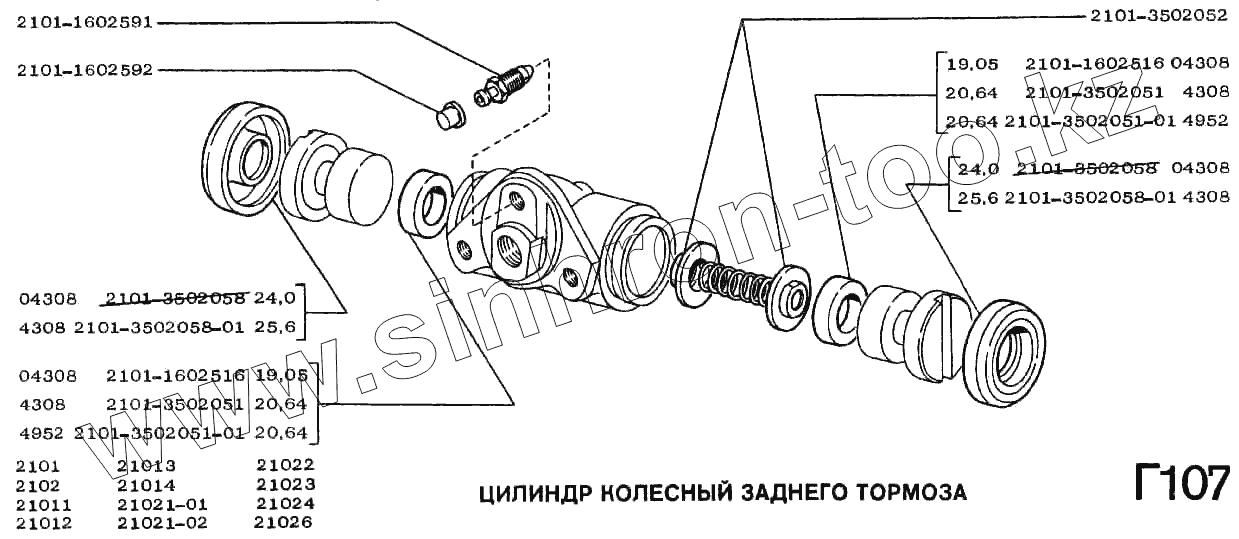 Каталог запасных частей к технике: ВАЗ-2101. Цилиндр колесный заднего тормоза
