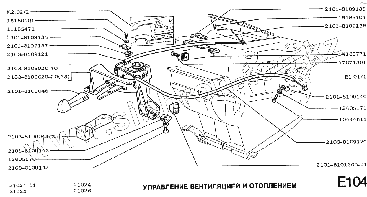 Каталог запасных частей к технике: ВАЗ-2101. Управление вентиляцией и отоплением