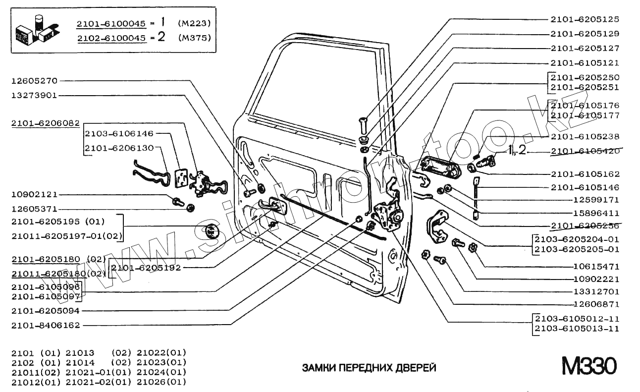 Каталог запасных частей к технике: ВАЗ-2101. Замки передних дверей