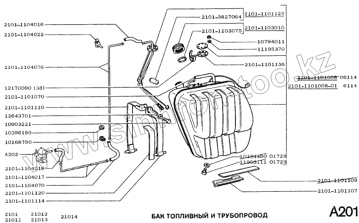 Каталог запасных частей к технике: ВАЗ-2102. Бак топливный и трубопровод