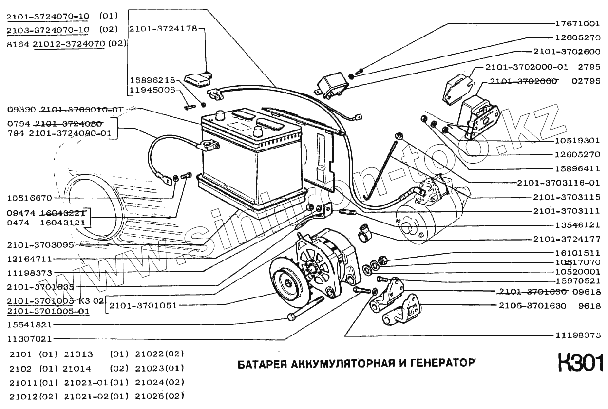 Каталог запасных частей к технике: ВАЗ-2102. Батарея аккумуляторная и генератор