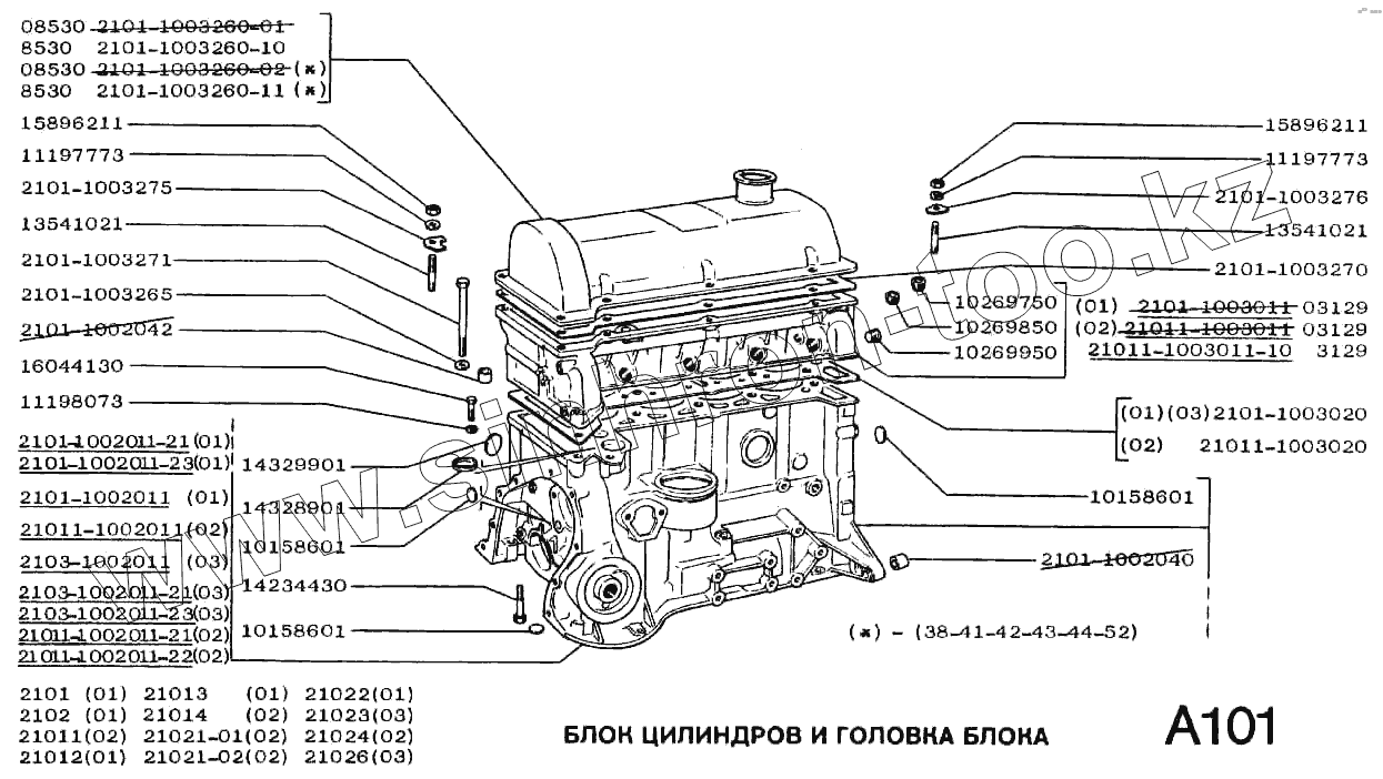 Каталог запасных частей к технике: ВАЗ-2102. Блок цилиндров и головка блока