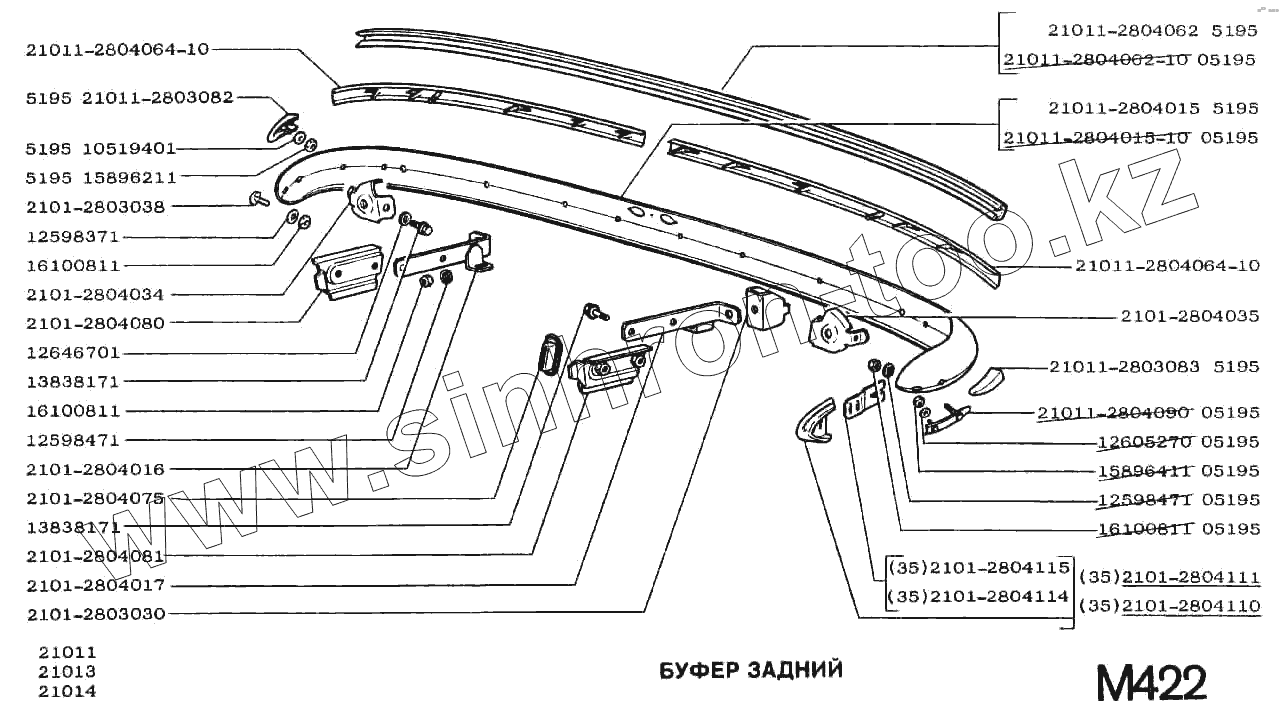 Каталог запасных частей к технике: ВАЗ-2102. Буфер задний