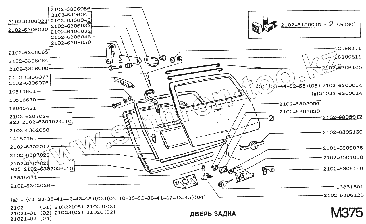 Каталог запасных частей к технике: ВАЗ-2102. Дверь задка