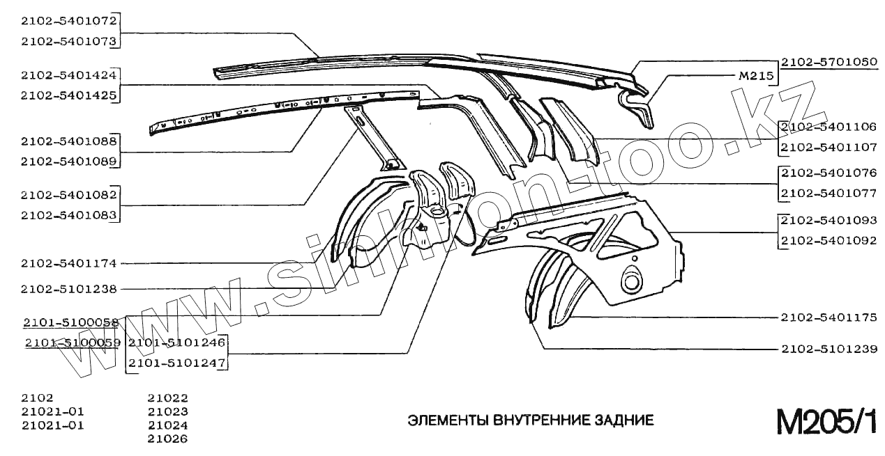 Каталог запасных частей к технике: ВАЗ-2102. Элементы внутренние задние