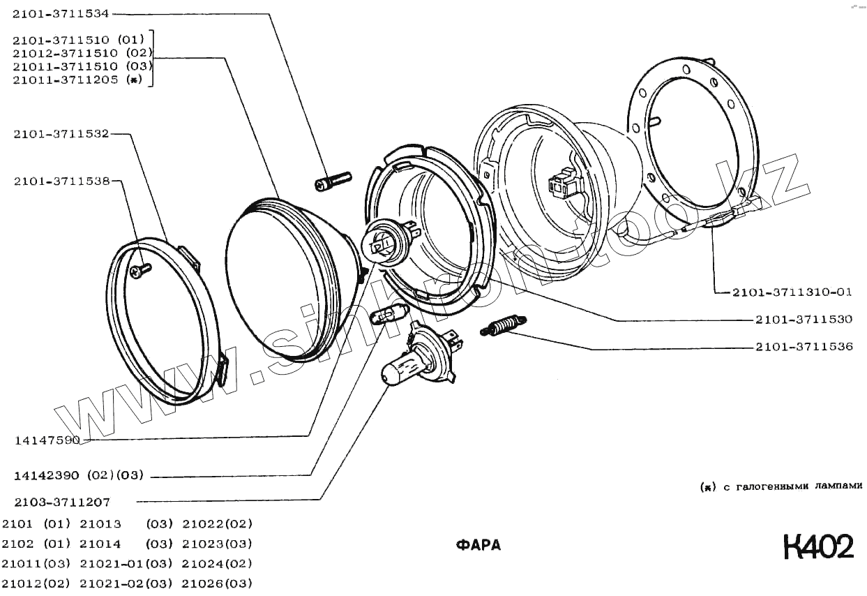 Каталог запасных частей к технике: ВАЗ-2102. Фара