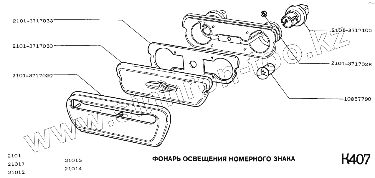 Каталог запасных частей к технике: ВАЗ-2102. Фонарь номерного знака