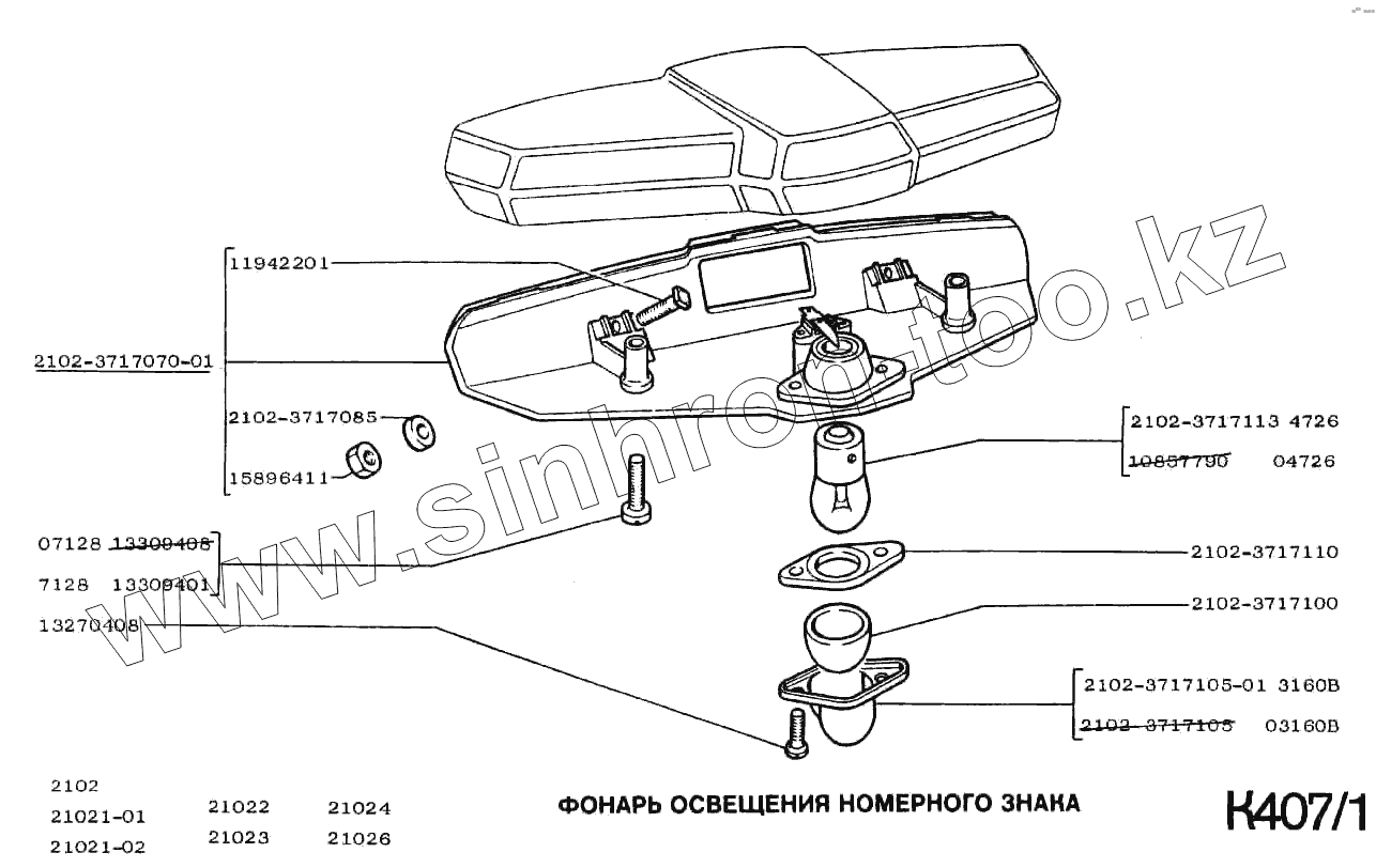 Каталог запасных частей к технике: ВАЗ-2102. Фонарь номерного знака