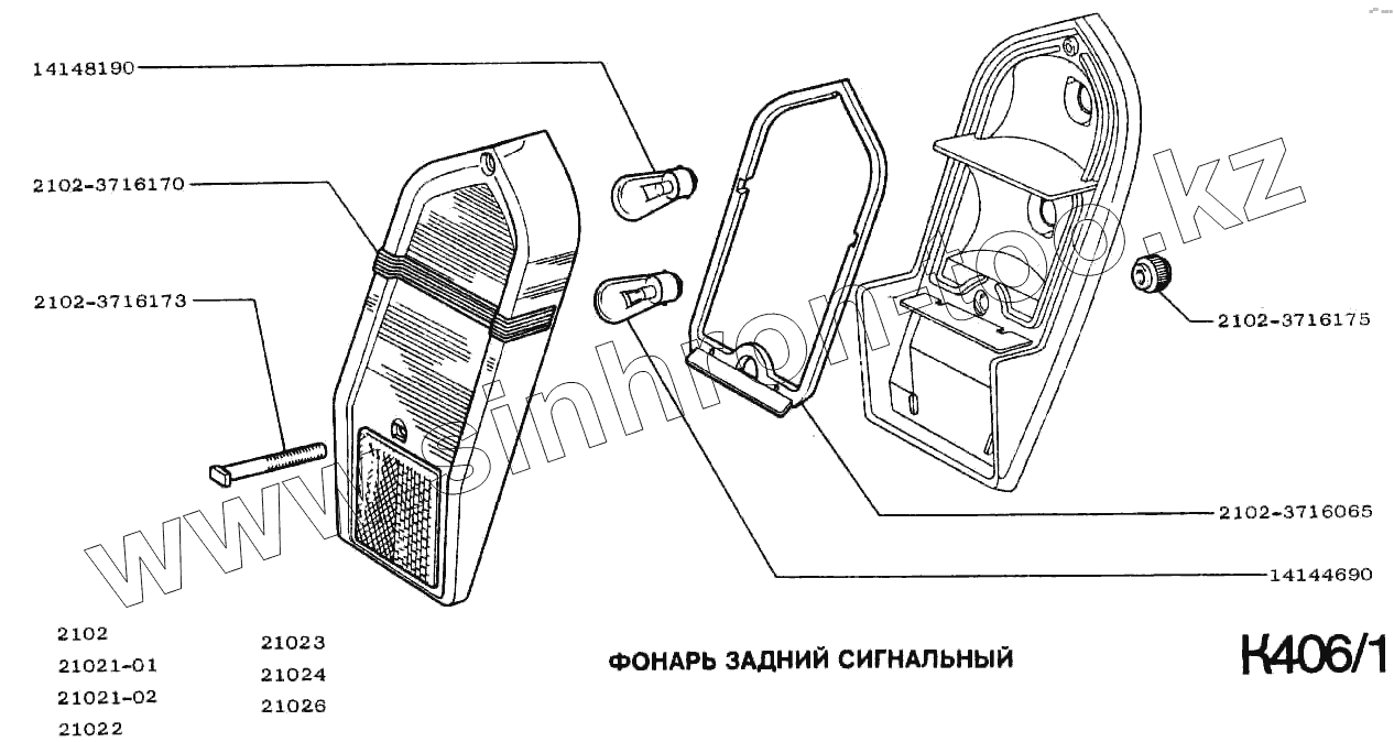 Каталог запасных частей к технике: ВАЗ-2102. Фонарь задний сигнальный