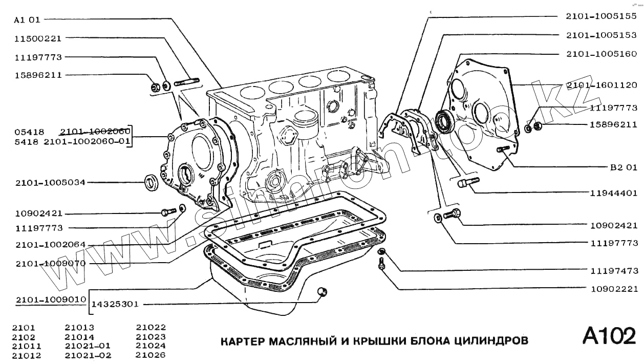 Каталог запасных частей к технике: ВАЗ-2102. Картер масляный и крышки блока