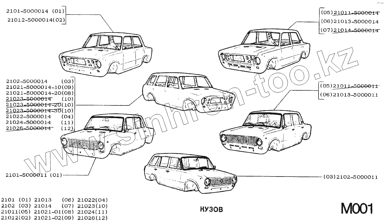 Каталог запасных частей к технике: ВАЗ-2102. Кузов
