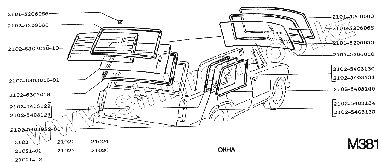 Каталог запасных частей к технике: ВАЗ-2102. Окна