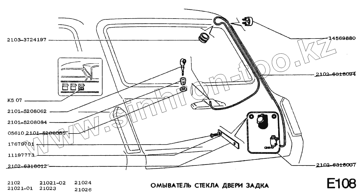 Каталог запасных частей к технике: ВАЗ-2102. Омыватель стекла двери задка