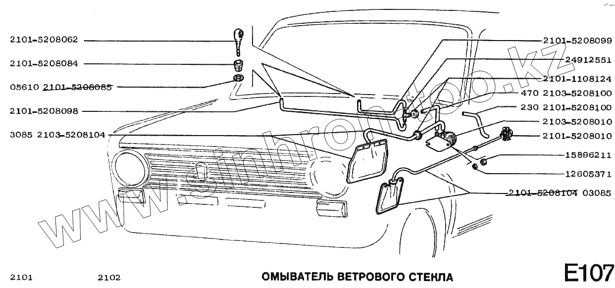 Каталог запасных частей к технике: ВАЗ-2102. Омыватель ветрового стекла