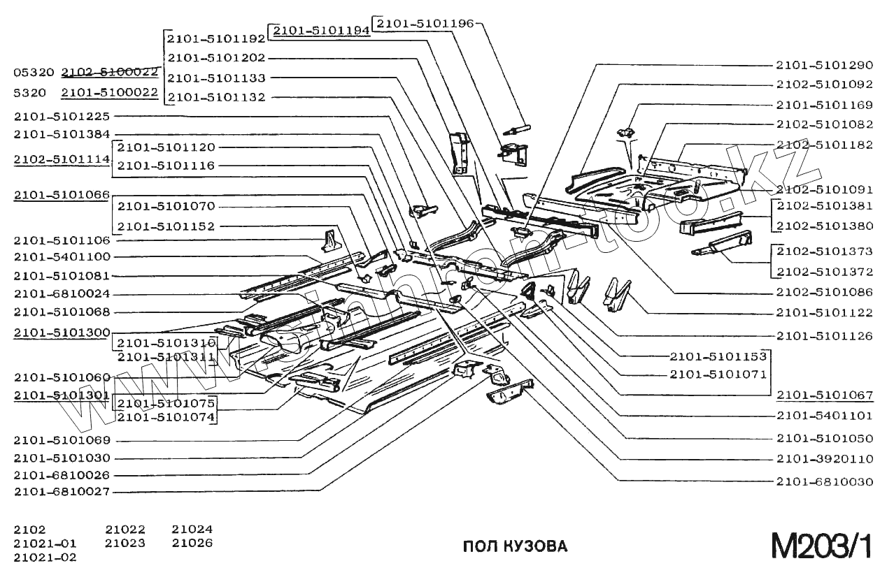 Каталог запасных частей к технике: ВАЗ-2102. Пол кузова