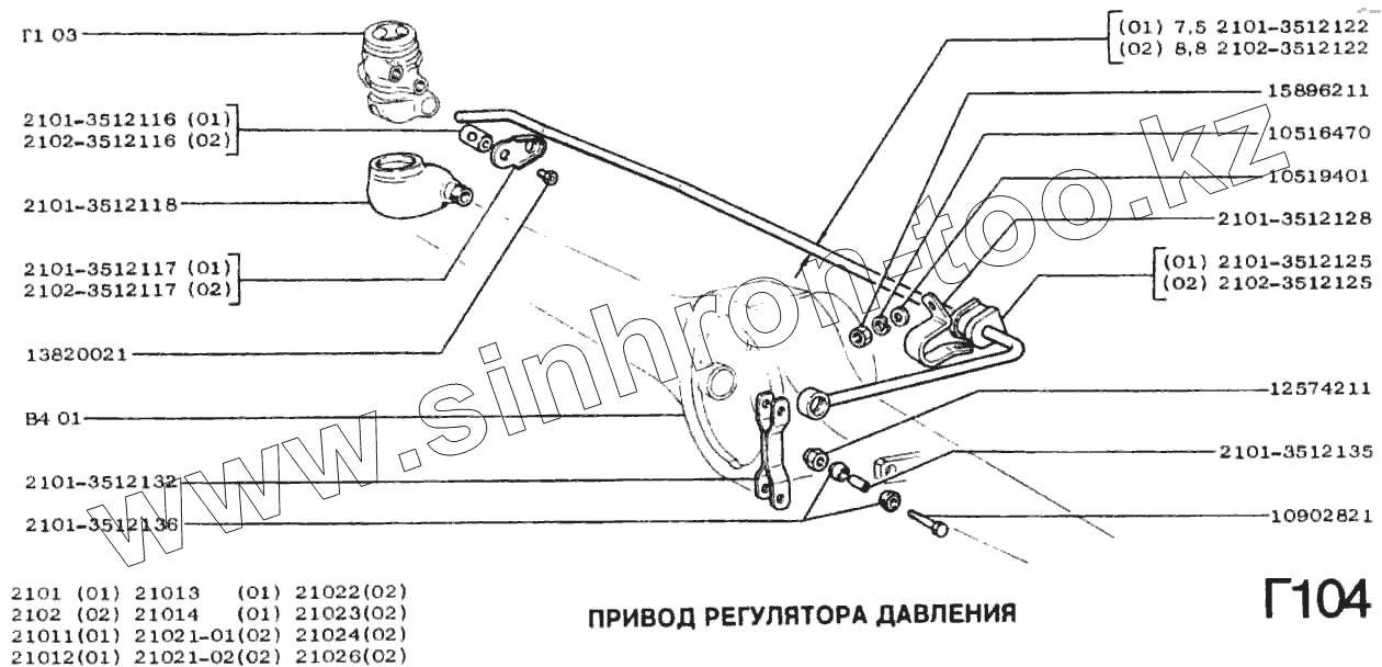 Каталог запасных частей к технике: ВАЗ-2102. Привод регулятора давления