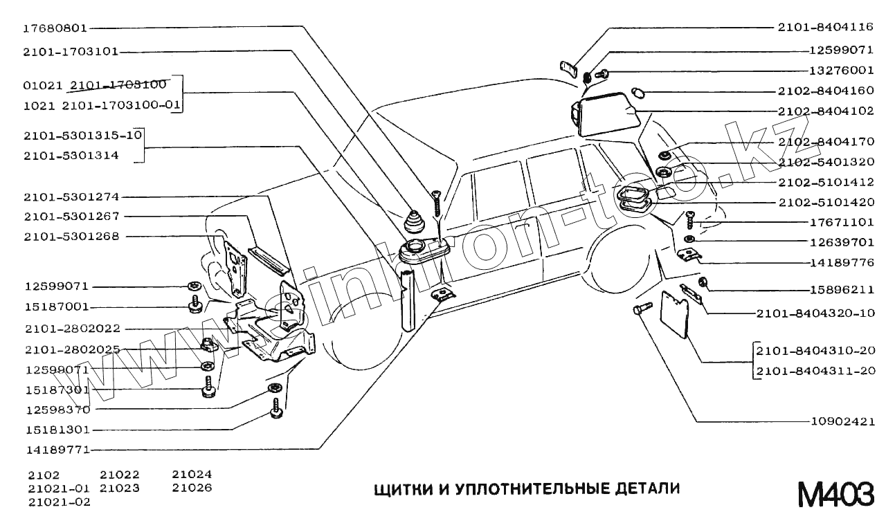 Каталог запасных частей к технике: ВАЗ-2102. Щитки и уплотнительные детали