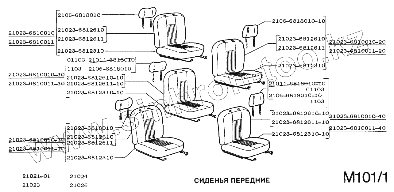 Каталог запасных частей к технике: ВАЗ-2102. Сиденья передние