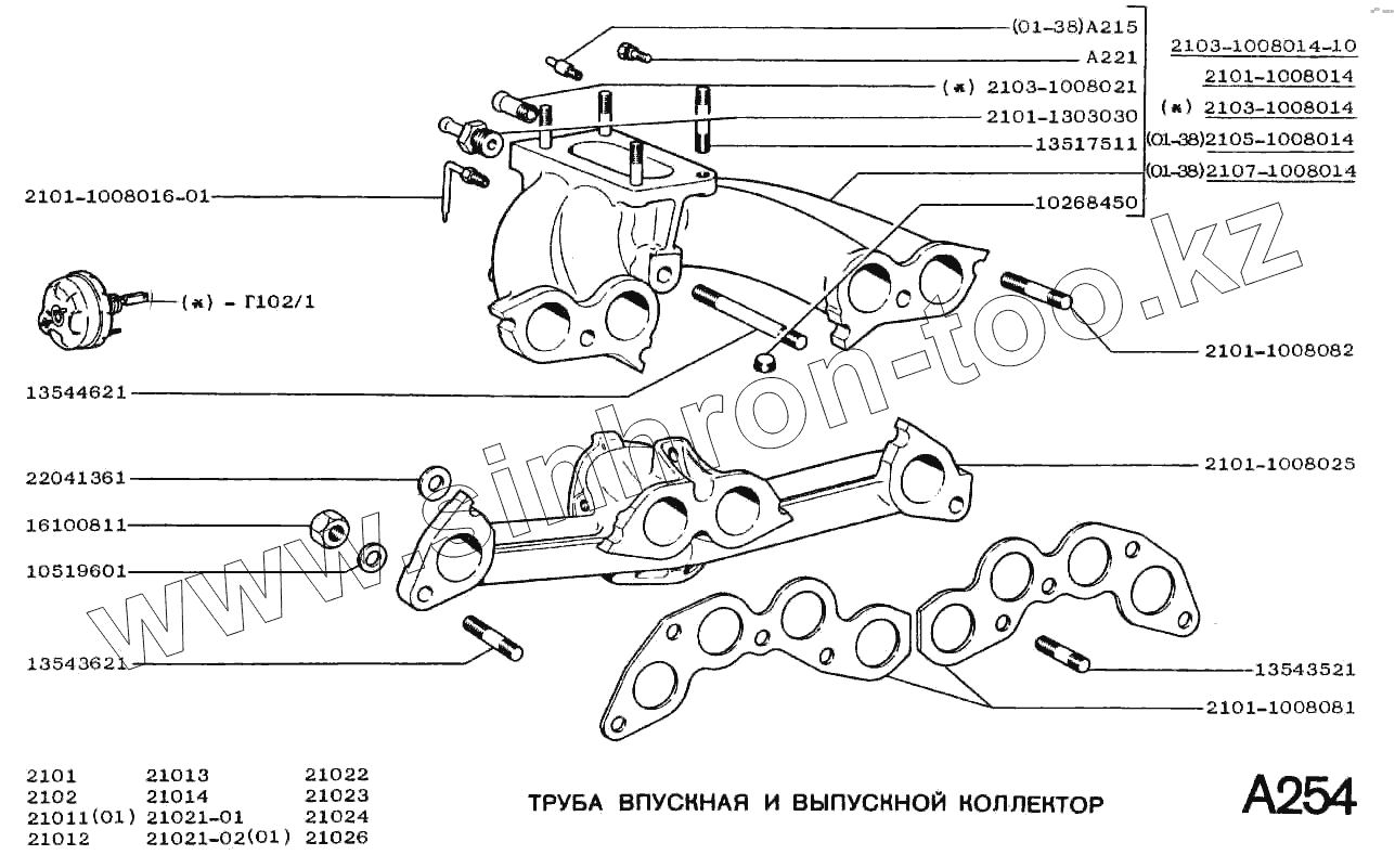 Каталог запасных частей к технике: ВАЗ-2102. Труба впускная и выпускной коллектор