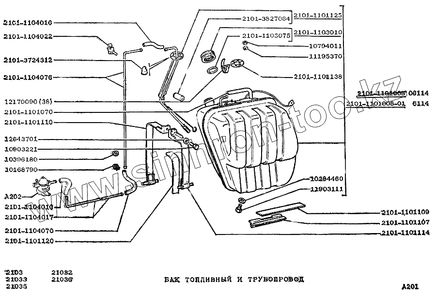 Каталог запасных частей к технике: ВАЗ-2103. Бак топливный и трубопровод