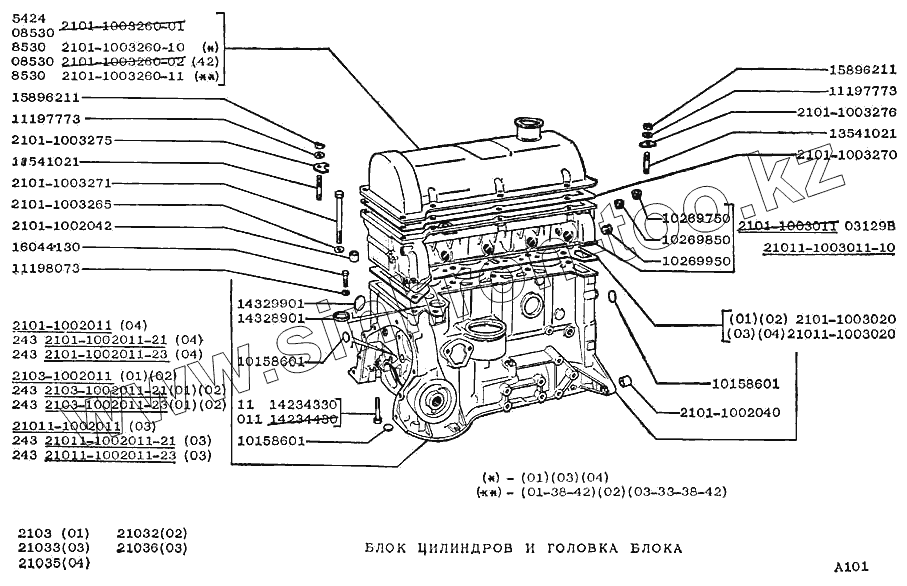 Каталог запасных частей к технике: ВАЗ-2103. Блок цилиндров и головка блока