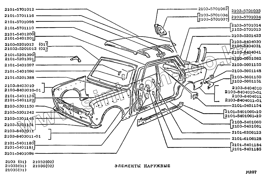 Каталог запасных частей к технике: ВАЗ-2103. Элементы наружные