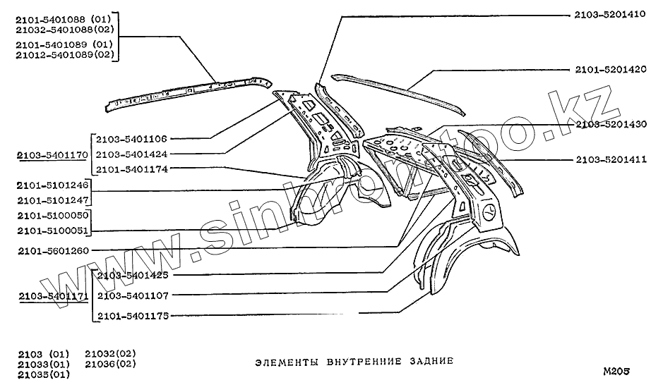 Каталог запасных частей к технике: ВАЗ-2103. Элементы внутренние задние