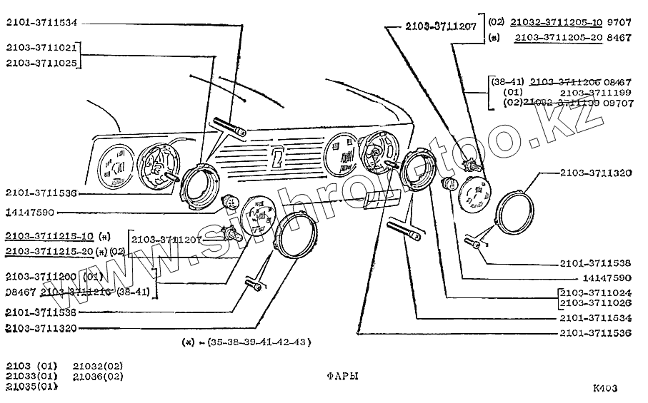 Каталог запасных частей к технике: ВАЗ-2103. Фары