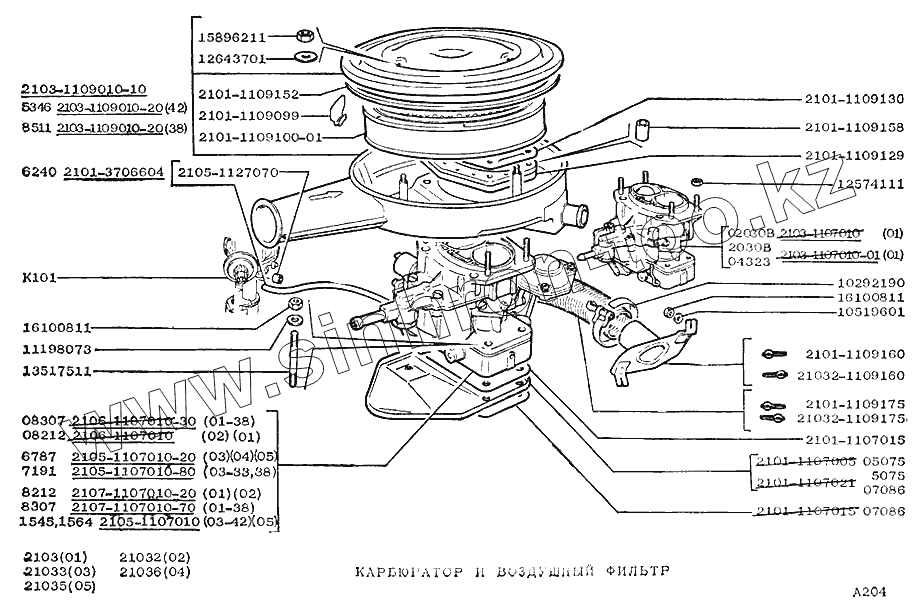 Каталог запасных частей к технике: ВАЗ-2103. Карбюратор и воздушный фильтр