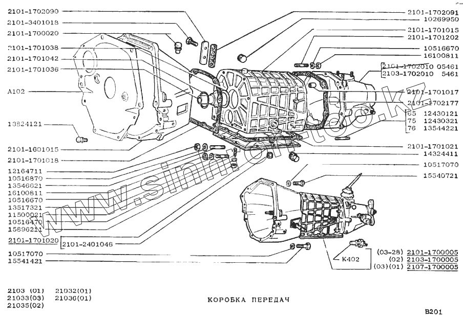 Каталог запасных частей к технике: ВАЗ-2103. Коробка передач